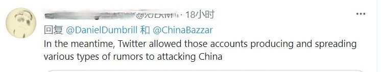 (冻结了Barrie账号的)同时,推特却允许那些制造和传播各种各样谣言攻击中国的账户存在。