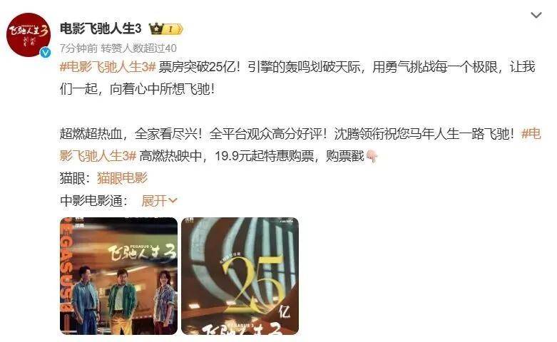 凭借精彩的赛车场面和和真实接地气的父子情感线》确实获得了出圈的讨论度。然而,没有人相信《飞驰人生3》的总票房能达到《哪吒2》的水平。要知道,去年《哪吒2》面对众多竞争对手,仍然能在《封神2》《唐探1900》等IP热门续作的围攻下实现连续多天的票房逆袭。灯塔数据显示,去年上映7天后,《哪吒2》的票房已经突破40亿元,远高于今年同期《飞驰人生3》的25亿元。